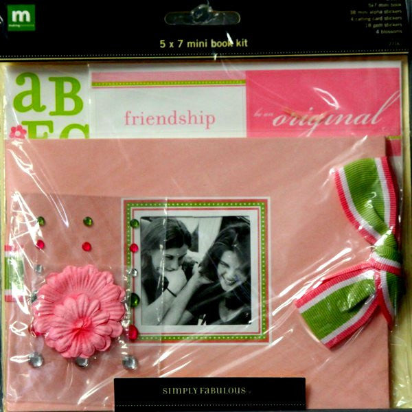 This Making Memories Mini Scrapbook Kit "Brooke" is acid and lignin free and includes a 5" x 7" mini album with ribbon tie, 4 calling card stickers, 38 alphabet stickers, 4 blossoms and 18 gem stickers and is ready for your to decorate.