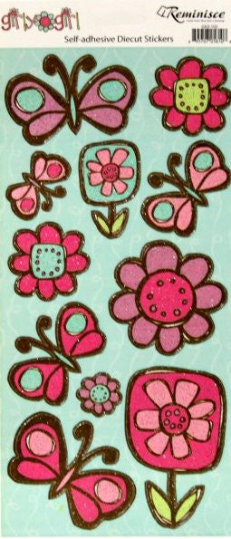 This is a Reminisce Girly Girl Butterflies & Flowers Self-Adhesive Diecut Stickers sheet. These stickers are great to embellish cards, tags, scrapbook pages or any other project and measures approximately 4.50" x 10.25". Just peel and stick and you are done.