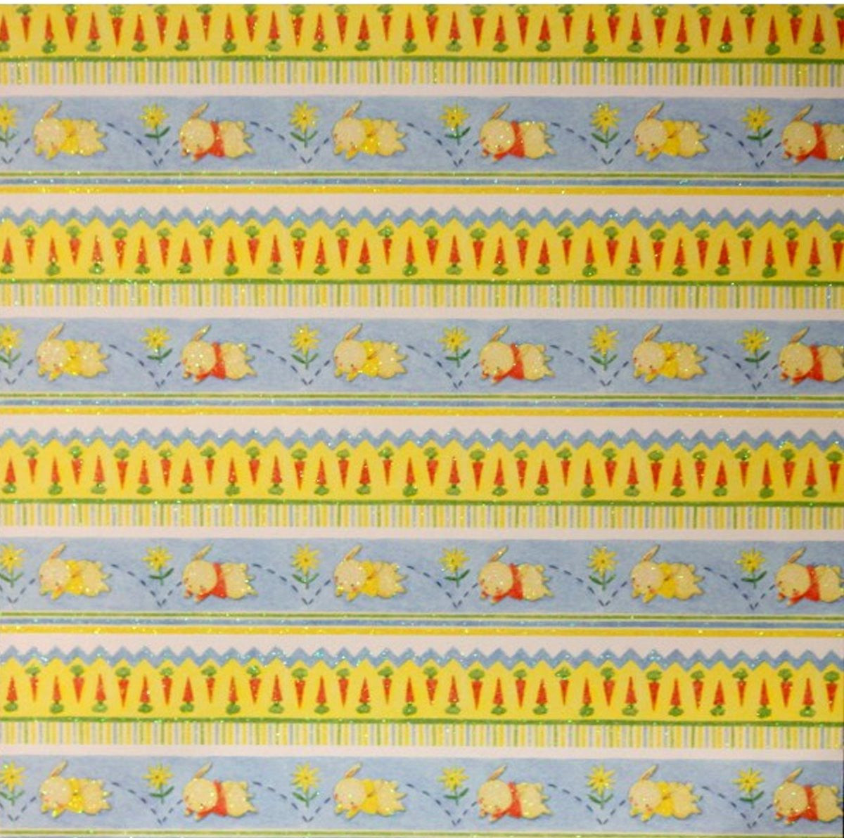 This is a sheet of 12" x 12" DCWV Heat Embossed Baby Bunnies In A Row Nursery Rhymes Cardstock Scrapbook Paper. This paper is great to make baby scrapbook pages, cards, tags or any other project and is considered a specialty paper because it is embossed with a raised surface.
