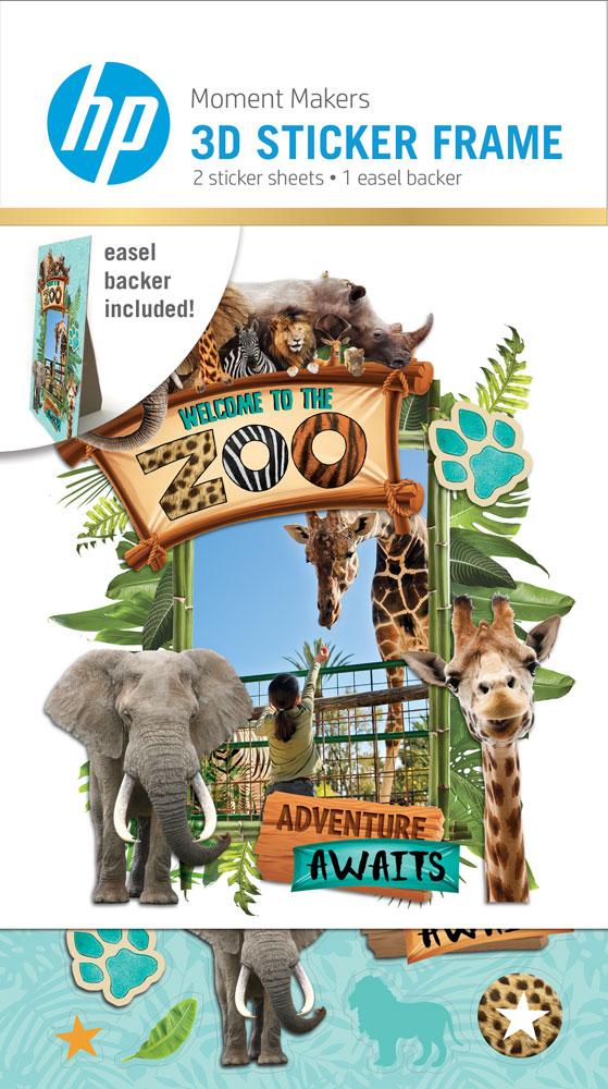 HP Moment Makers 3D Zoo Sticker Frame/Easel Kit- This kit includes 2 sticker sheets (1) Dimensional & 1 Clear sheet each and a frame/easel CLSTKR