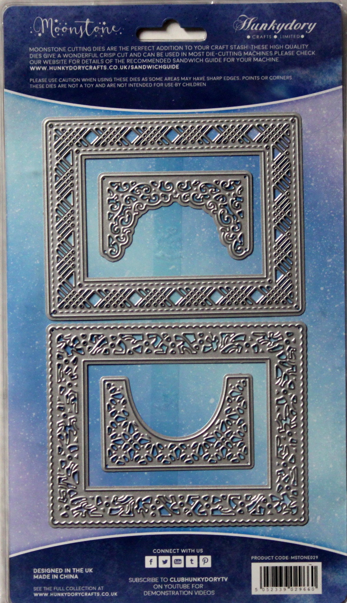 Hunkydory Moonstone Framed & Fabulous Cutting Dies Set is the perfect addition to your craft stash. These high quality dies give a wonderful crisp cut and can be used in most die-cutting machines. Please check the Hunkydorycrafts website for details regarding the recommended sandwich guide for your specific machine. This set has 4 metal dies.