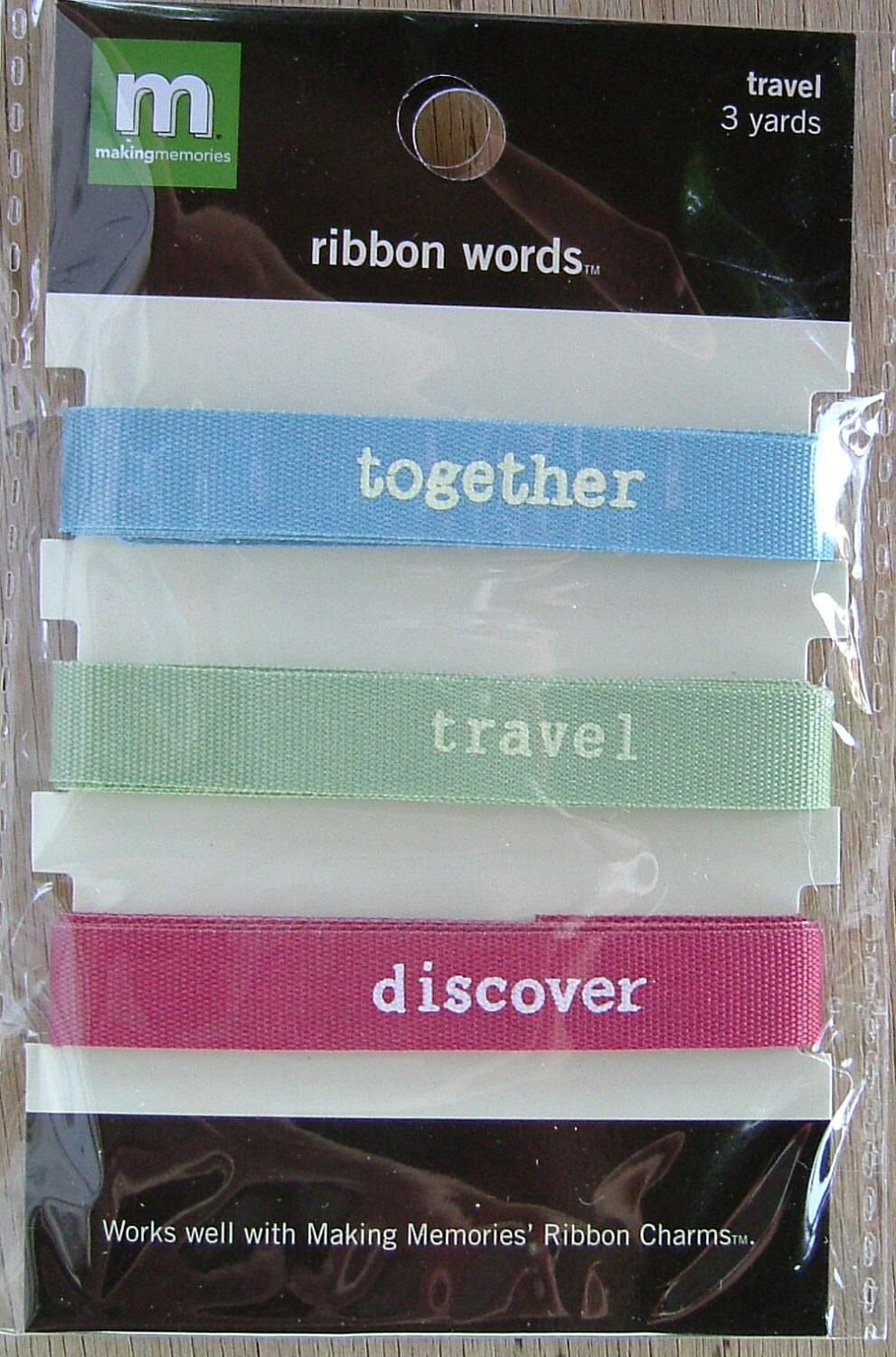 Enhance your Travel crafts with Making Memories Travel Ribbon Words. This 3-yard ribbon features Fun and Vacation phrases that will add a touch of nostalgia to your projects. Pair it with Making Memories Ribbon Charms for a complete and unique look.