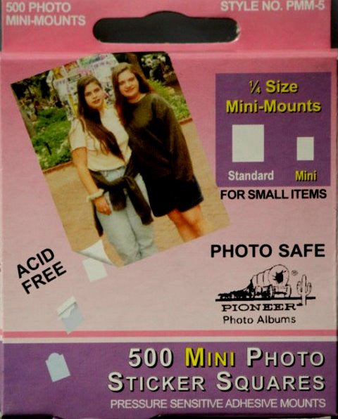 These Pioneer Photo Permanent Mini Adhesive Mounting Photo Squares are double-sided and are acid/lignin free and can be used to mount your photos, or can be used to bond paper, adhere embellishments, etc. for many of your "light weight" crafts. Just peel the backing and stick. There are 500 mini clear photo self-adhesive squares in all. The package measures approximately 3" x 3.50".