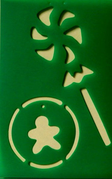 This is a 4" x 6" Christmas Treats Holiday Stencil. This stencil is made of a thin green plastic material and you can use markers, inks, pencils, sprays, etc. to transfer the image to almost any surface and you can use this stencil over and over again. This item is great to create cards, tags, scrapbook pages or to use on any other arts & crafts project.