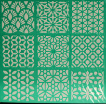 This is a Pretty Backgrounds Flexible Stencil which measures 6" x 6". Use pencils, pens, markers, inks, sprays, paints, embossing, etc. to transfer the image to almost any surface. This stencil is made of a thin flexible blue/green plastic material and is great for scrapbooking, cardmaking, school, body art, office, home, or DIY craft projects & anything else and can be used over and over again!