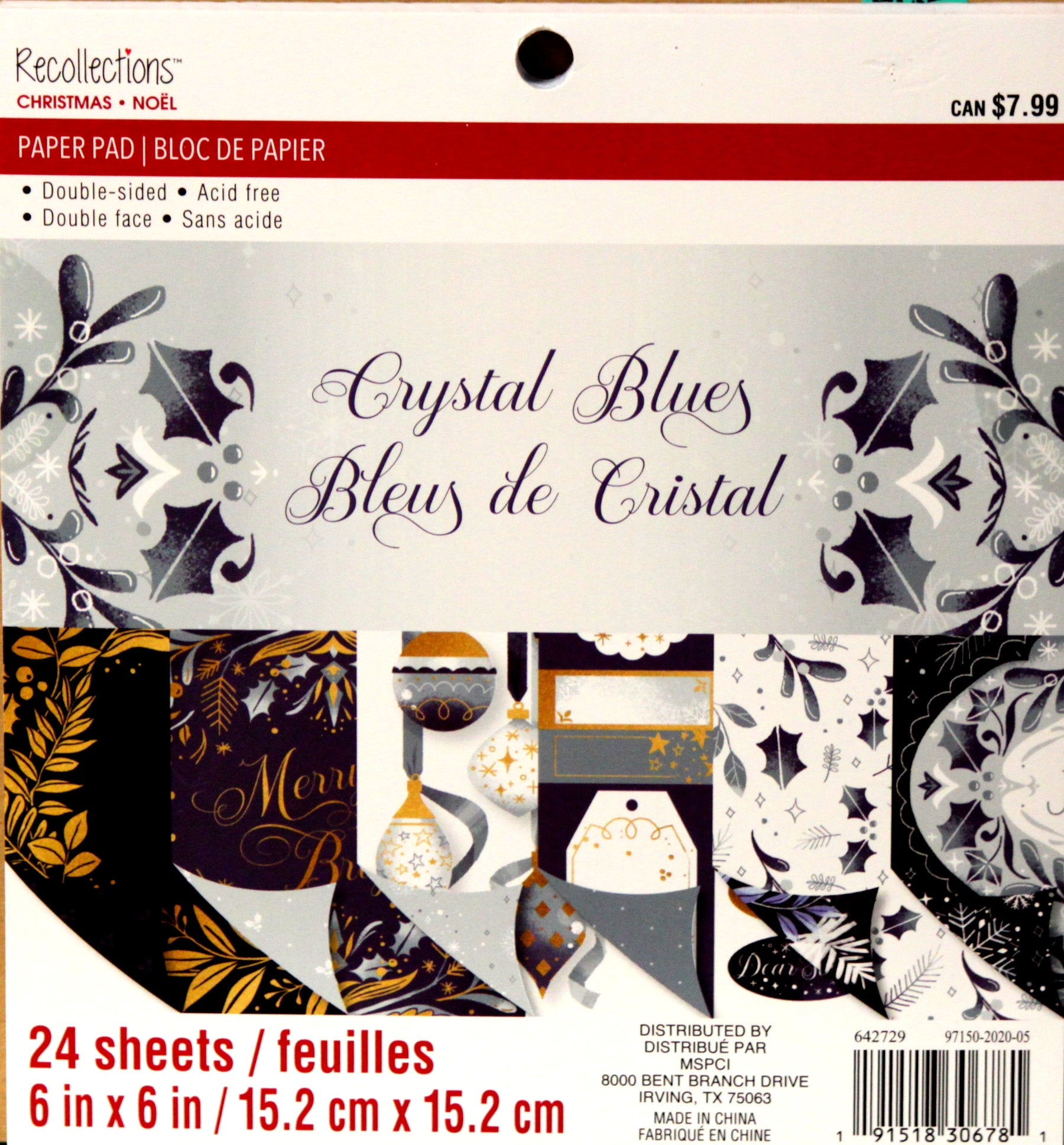 Recollections Crystal Blues Christmas 6 x 6 Designer Cardstock Double-sided Paper Pad- 1 left! 24 double-sided cardstock sheets